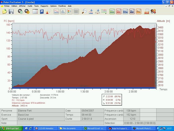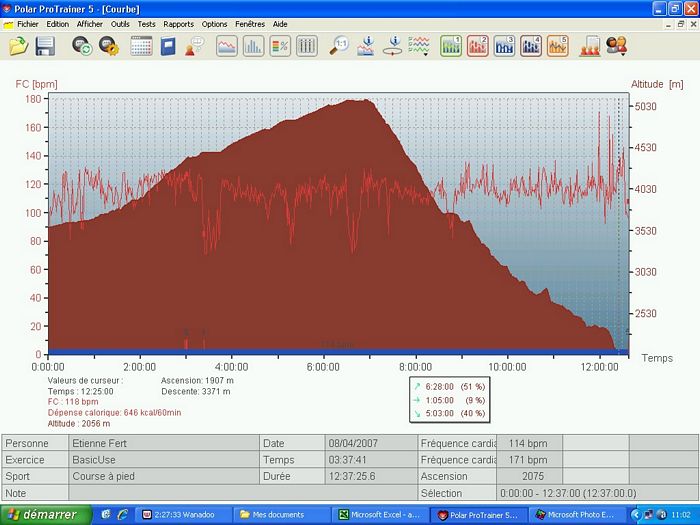 Deux départs sont prévus pour cette étape. Les marcheurs et les coureurs les moins rapides partent à 3h et les autres devraient partir à 4h. Avec les retards classiques sur ces départs très matinaux, nous décollons à 4h30. Le rythme est très rapide. C’est le dernier jour, chacun jette ses dernières forces dans la bataille et souhaite finir en bouquet final pour le dernier passage à plus de 5000m. Au bout de 15 minutes de ce rythme infernal (600m/h à 4000m …), je décide de ralentir pour me ménager tout en gérant le petit écart qui se creuse avec mes concurrents directs. A ce moment, je repense au tour de France que je regardais dans ma jeunesse et à la gestion de Bernard Hinault. Il était souvent distancé dans les premiers kilomètres des cols mais revenait tranquillement à son rythme. J’espère pouvoir l’imiter à mon modeste niveau. Au lac Tilicho, le jour s’est maintenant levé et le panorama sur le lac est grandiose même si il est en grande partie gelé. Gelés, nous le sommes aussi et la température glaciale a fait geler l’eau dans le tuyau de mon réservoir d’eau. Heureusement, j’arrive tout de même à extraire un peu d’eau de mon bidon. Sur le replat à côté du lac, je poursuis mon effort et petit à petit, je rattrape les coureurs qui m’avaient distancé. Au check point du col intermédiaire, je suis revenu dans les dix premiers et je me sens en pleine forme. Je continue sur ce rythme et je dépasse Jaganath qui était ce matin à dix minutes devant moi au général. Au lieu d’emprunter le passage classique du Mesokantu La qui est réputé assez raide, nous allons vers un autre col plus haut mais plus facile à descendre surtout compte tenu de la neige dans laquelle nous marchons depuis le lac. Après une longue traversée, j’arrive au col avec Bruno, en 5eme position. Et c’est aussi ma place virtuelle au classement général à ce moment. Si je garde l’écart sur Jaganath et si je reste avec Jean-Marc qui arrive bientôt au col, je finirai à une place absolument inespérée. Après une pause de quelques minutes pour apprécier le panorama inoubliable, je pars dans la descente qui est délicate sur le début dans la neige. Jomsom, qu’on aperçois au loin dans la vallée, semble bien loin. Je fais la descente avec un petit groupe qui prend un rythme raisonnable. Et soudain, ça s’emballe, Nigma et Lhakpa accélèrent sérieusement. Je me demande bien pourquoi elles ont soudain passé la vitesse supérieure. Je me retourne, je vois Magali et tout s’explique. La concurrence pour le classement général féminin. Tout le monde à emboîté le pas mais le cheminement n’est pas facile. Nous sommes passés par un col peu emprunté et il n’y a pas de chemin tracé. Il faut plus ou moins naviguer à vue en fonction du briefing d’hier et de la carte. Et justement, nous arrivons à un point crucial. C’est le petit replat à côté d’une crête. Nous avions l’instruction précise de ne pas prendre le chemin vers cette crête et nous ne suivons pas les coureurs népalais qui s’y sont engagés. En revanche, le chemin que nous devrions prendre à droite est loin d’être clair. Alors nous prenons le chemin qui s’engage dans le petit vallon. Au début, ça se présente bien mais nous arrivons dans une pente raide qui mène à un torrent qui descend doucement. Ca ne sent pas très bon et on a clairement quitté le chemin normal mais il nous semble qu’il sera possible de retrouver le chemin en suivant le ruisseau. Plus tard, nous retrouvons les népalais qui ont empruntés la crête et sont finalement descendus dans le vallon. Nous formons un groupe de 7 coureurs. En remontant sur les hauteurs, nous avons réussi à retrouver un semblant de chemin. Malheureusement, c’est un leurre. En continuant la descente, nous aboutissons sur un cul de sac. Seul Bruno, devant, parviens à passer au prix d’une chute assez dangereuse. C’est un plan galère. Alors, je décide de repartir seul sur la crête pour retrouver le chemin que nous voyons en face. Solution sure mais longue … très longue. Une heure de montée pour retrouver ce foutu chemin. Je suis revenu sur les rails mais l’erreur d’aiguillage m’a coûté un temps énorme. J’ai probablement perdu quelques places dans cette galère. Le moral est à zéro, je gamberge et je ne suis guère motivé pour aller vite dans cette descente. Pour ne rien arranger, je suis au bord de la fringale et il y a un énorme vent de face. Ras le bol ! J’arrive à Jomsom complètement épuisé après presque 12 heures de course. J’ai à peu près perdu 2 heures dans cette affaire et je pointe maintenant à la neuvième place au général. Dommage, mais je parviens tout de même à garder ma bonne humeur pour prendre une bière avec mes collègues. J’aurais en fait dû rester avec le petit groupe au moment où je suis remonté seul. Ils ont finalement réussi à trouver un bon passage pour retrouver le chemin et sont arrivés une heure avant moi. Relevé Polar | ||