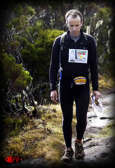 ‘’Diagonale des fous’’, tel est le nom dont on affuble cette épreuve mythique qui se déroule sur l’île de la réunion. Non, ce n’est pas de la folie, c’est un instinct naturel d’avoir l’idée de traverser cette île de part en part. Alors bien sur, les chiffres impressionnent : 125 km, 8500+ mais les délais imposés pour avoir le droit de faire cette diagonale sont raisonnables (60h) et permettent à un randonneur très bien entraîné d’envisager cette aventure. C’est exactement la réflexion que je me fais en ce 16 octobre au moment où je vais retirer mon dossard au stade de la redoute à St Denis de la Réunion. Un panaché de coureurs visiblement très affûtés et de randonneurs joviaux fait la queue pour obtenir son dossard, ses maillots et surtout la casquette mythique qui protège aussi bien du soleil que des pluies tropicales. En ce qui me concerne, le moral est un peu mitigé. J’ai encore du abandonner à la Fortiche en Juillet et le test positif au Trail-91 en Septembre n’a pas suffit à me rassurer d’autant que je suis victime depuis quelques jours de farniente à St Gilles d’une angine qui ne va pas m’aider. L’objectif est simple : finir pour enfin vivre un ultra-trail de bout en bout. Le lendemain, je rentre vraiment dans le vif du sujet. Non, pas déjà la course mais une journée typique de veille de course. Repos, mais aussi pas mal de choses à faire pour être fin prêt le lendemain. Simplement la logistique à gérer : je n’ai pas envie de prendre le bus qui part en pleine nuit de Saint Denis, alors je dois aller déposer la voiture de location que j’ai utilisée pendant quelques jours à l’aéroport pour ensuite prendre de multiples bus pour me rendre sur le lieu de départ. Cela après avoir donné l’essentiel de mes bagages à un hôtel où je les récupérerai après la course pour aller passer une semaine de farniente à l’île Maurice. Et quand je dis après, c’est pas un ou deux jours le temps de me reposer. Ah, non, j’aime pas perdre quelques précieux jours de vacances alors j’ai tout optimisé pour partir juste après mon arrivée. En gros, si je fais plus de 36h, je vais commencer à être un peu à la bourre. Dans ma tête, je rêve un peu de faire moins de 30h et je me dis que je devrais arriver avant 35h. Sinon, c’est que ça va vraiment mal … A l’aéroport, je sympathise avec un allemand qui part aussi vers le départ en bus. On échange sur nos objectifs respectifs. Lui a du abandonner l’année dernière à Cilaos alors il veut simplement arriver en gros en 40h. Il fait des gros yeux quand je lui annonce 30 heures … Pas fait pour me rassurer ça. On évite de parler de nos boulots : il travaille chez Microsoft ;-) Après quelques sauts de puce en bus, nous arrivons finalement sur le lieu de départ. Je rencontre Eric Bonotte dans le bus, que j’avais un peu accompagné sur la Fortiche, lui partant vers une belle perf et moi vers une belle déshydratation … Avec mon collègue allemand, nous faisons quelques centaines de mètres pour aller manger et dormir dans une petite auberge rustique et sympa. Que des coureurs qui se préparent pour le grand événement de l’île. Je me souviens encore des quelques pas que je suis allé faire avant de manger. Je gamberge un peu mais je me sens vraiment reposé et je ne sens plus mon angine. Je reste quand même humble en gardant à l’esprit que mon seul objectif est de finir pour enfin vivre une expérience complète d’ultra-trail. Le lendemain matin, j’arrive tranquillement dans le sas de départ pour le check du matériel et le petit déjeuner offert par l’organisation. Il fait une peu frisquet et quelques nuages menacent mais les conditions semblent tout de même bonnes. Au top de départ, je profite du faux plat pour courir un peu et me délier les jambes mais très vite la pente devient plus prononcée et la marche devient vite la règle. Le sentier est bon jusqu’au premier ravitaillement à La crête. Le jour commence tranquillement à se lever, je suis encore bien frais alors la tension d’avant course est maintenant oubliée pour laisser la place à une progression sereine mais sans optimisme démesuré … et avec raison. Après le ravitaillement, ça se corse, le sentier devient difficile, boueux et même technique par moments. Pas de la tarte cette montée jusqu’à Foc-Foc. On sent le moral du peloton qui baisse au fur et à mesure des glissades ou dérapages dans la boue. Enfin, on émerge de la forêt pour atteindre les hauteurs. Un soulagement mais aussi une inquiétude naissante pour moi. Je me sens encore frais sauf que j’ai mal à l’estomac (probablement trop de gels qui m’ont mis pas mal d’acidité dans mon estomac fragile) et en plus je commence à ressentir le début d’une tendinite au coup de pied droit, consécutive à cette montée acrobatique. Pas bon pour le moral tout ça. Avant le ravitaillement: | |